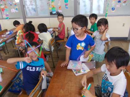 雨の日の放課 【7月3日(木)の1年生】 公開日 2014/07/03 更新日 2014/07/03 1年 今日は、午後から雨が降り始めたので、昼放課は室内で過ごすことになりました。教室の中で一年生は、折り紙で遊んだり、自由帳をかいたり、読書をしたりと自分で何をするのかを考えて、落ち着いて放課を過ごすことができました。