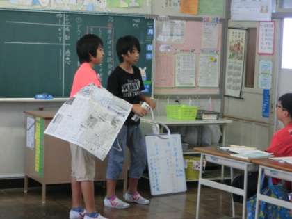 今日は国語の音読発表会をしました。どの班も堂々とした演技に拍手が鳴り止まないほどでした。国語をまたひとつ好きになったのでは??
