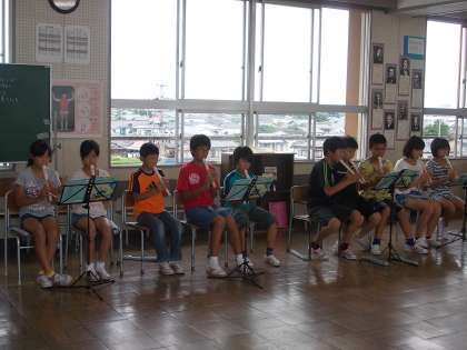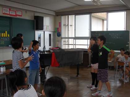 音楽交流会 【7月4日(金)の6年生】 公開日 2014/07/06 更新日 2014/07/06 6年 今日は,他校から交流に来た友達と一緒に交流をしました。 社会では水墨画をかいたり、音楽ではゲームをしたりと楽しく過ごしました。給食を食べ終わった後、掃除も一緒に行いました。