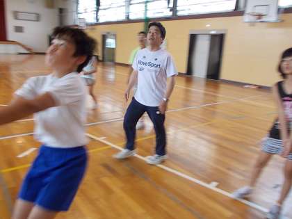 その7 公開日 2014/07/08 更新日 2014/07/08 PTA・学校運営協議会 大人も子供も真剣です。しかし、いかんせん、厳しいルールが立ちはだかり必死のレシーブも相手コートへ返してはダメなのです。がっくりうなだれる大人をかばう子どもの姿を何回も見ることとなりました。試合は緊迫し、この後最後の1点が入り長い試合の終止符が打たれました。