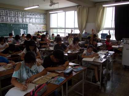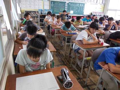 蒸し暑くてもがんばります 6年生 【7月8日(火)】 公開日 2014/07/08 更新日 2014/07/08 6年 今日はとても蒸し暑くなりました。 けれど、さすが6年生、たとえ暑くても、給食の後でも、1組はテスト、2組は社会をがんばっていました。