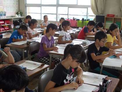 蒸し暑くてもがんばります 5年生 【7月8日(火)】 公開日 2014/07/08 更新日 2014/07/08 5年 今日はとても蒸し暑くなりました。 けれど、5年生は、蒸し暑くても、給食の後でもがんばります。 5時間目の様子です。5年1組と3組は算数でした。2組は英語でした。