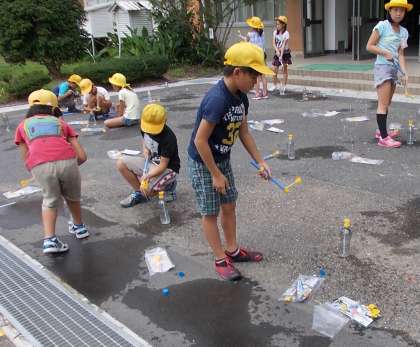 空気と水の勉強をしています!(その2) 公開日 2014/07/12 更新日 2014/07/12 4年 水鉄砲で遊びながら、水の手ごたえを十分感じていました。今日は、お弁当だったので、たくさん実験することができました。おいしいお弁当を作っていただき、ありがとうございました。