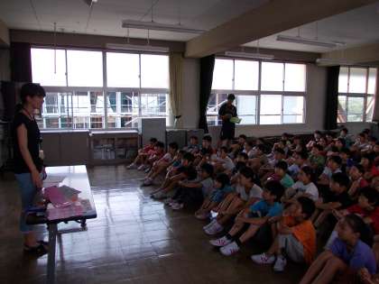 今日は、養護教諭の日置先生に、健康面でキャンプ前に気をつけること、キャンプでの注意事項について話をしていただきました。