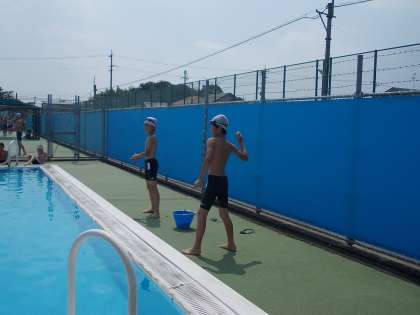 プールでレクリエーション 【7月16日(水)の6年生】 公開日 2014/07/16 更新日 2014/07/16 6年 2時間目に学年みんなで宝探しやドッジボールをプールで行いました。レクリエーション係が企画をして、司会や審判まで行いました。1時間があっという間に過ぎてしまいました。小学校最後の水泳の授業を楽しく過ごしました。