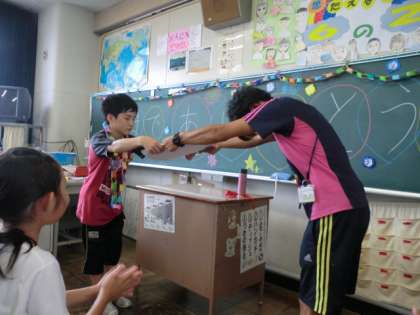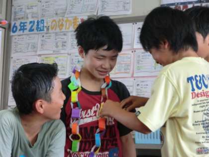 思いやりいっぱい 大はしゃぎのレクリエーション【7月17日(木)の6年生】 公開日 2014/07/17 更新日 2014/07/17 6年 今日は、6年2組の大事なメンバーのお別れ会も兼ねて、レクリエ—ションをしました。豪華な飾りを教室いっぱいにつけて、楽しく1時間過ごせました。すてきな笑顔がたくさん見られました。