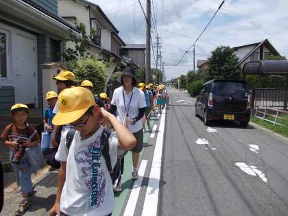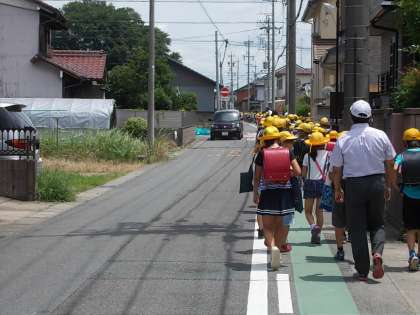 下校では、集合場所まで先生方も付いていきます。新たに危険な個所ができていないか。一人になる場所はないかなど、点検しながら下校しました。命を輝かせて夏休みを過ごすためにも、自分の命を自分で守る気持ちを忘れないでほしいと思います。みんな、すてきな夏休みにしてくださいね。