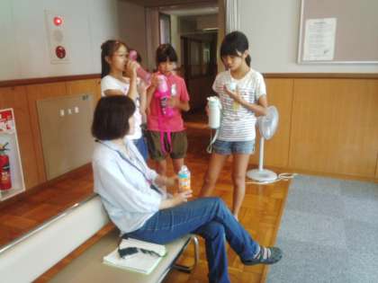 部屋の整頓が一段落し、担任の先生とお茶してます。