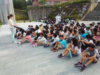 最後の日となりました。少し眠そうな人もいますが、みんな元気で朝の会に参加しました。