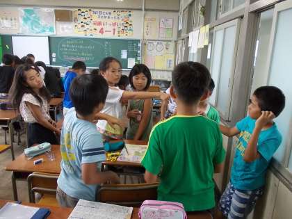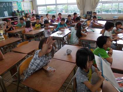 主役の登場! 出校日 【8月4日(月)】 公開日 2014/08/04 更新日 2014/08/04 学校生活 子どもたちのとって久々の登校日となりました。 朝は突然の雨で、ずぶ濡れになった子もいました。 しかし、教室では友達との再会を喜び、みんな元気に過ごしていました。