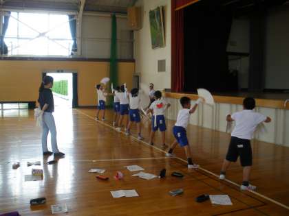 運動会に向けて、応援団の練習も始まっています。授業後に屋内運動場で、立つ位置やエールの声、振りつけなどを先生から指導を受けながら一生懸命に練習をしていました。赤・白どちらも相手に負けない大きな声を出すことができていました。これからさらに練習を積んで、息のあった応援を見せることができるように頑張ります。