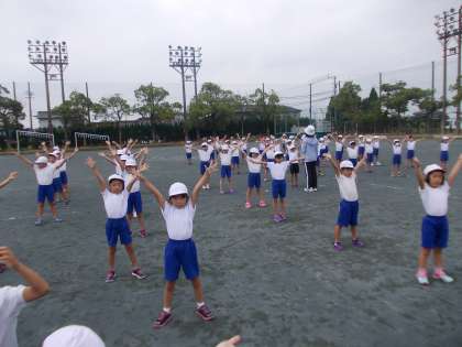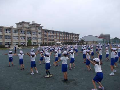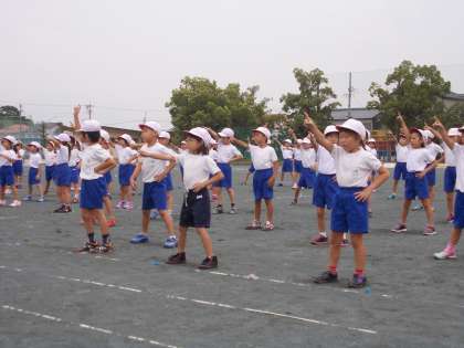 今日は運動場で練習しました。【9月8日(月)の2年生】 公開日 2014/09/08 更新日 2014/09/08 2年 今日は運動場で初めての練習をしました。2年生の表現の練習は、隊形移動の練習でした。新しい練習に戸惑いの様子が見られましたが、何度か練習を繰り返していくうちに、いつのも調子で元気よく踊ることができました。さらに練習を積み重ね、踊りに磨きをかけ、本番では笑顔いっぱいの踊りを見せてほしいと思います。