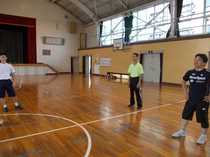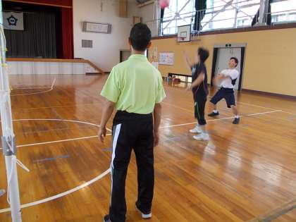 その9 公開日 2014/09/09 更新日 2014/09/09 PTA・学校運営協議会 形勢は大人の有利、子どもたちのチームはことごとく跳ね返されていました。時々大人チームもびっくりするボールが返ってくることもあり、成長がうかがえます。