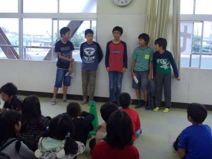 学年レクリエーション【10月31日(金)の6年生】 公開日 2014/10/31 更新日 2014/10/31 6年 修学旅行でできなかったレクリエーションの続きをなかよし広場で行いました。 盛り上げナイトが考えてくれたレクリエーションやクイズやコントを行ってくれ、学年みんなで楽しみました。卒業に向けて学年が結束してきているように感じます。