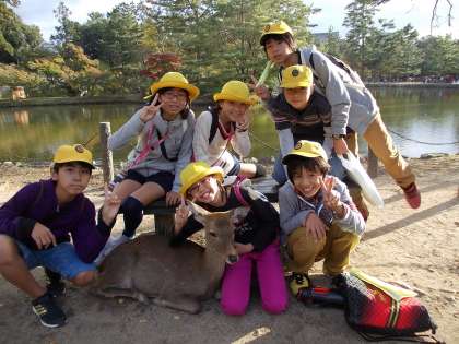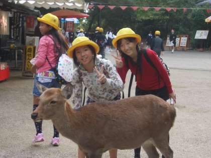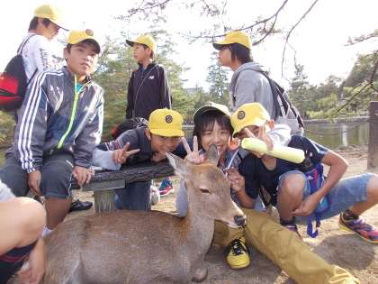 東大寺では、鹿ともふれあって、仲間の輪も一層深まりました。