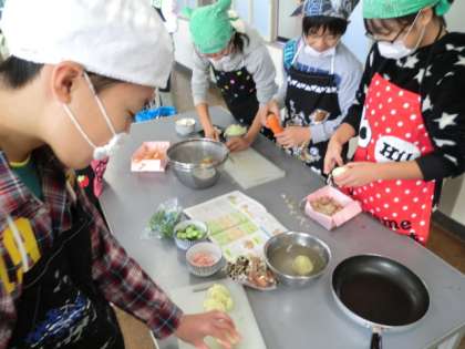 星3つ!調理実習楽しめました その1 【11月14日(金)の6年生】 公開日 2014/11/14 更新日 2014/11/14 6年 今日は調理実習がありました。どの子も、てきぱき動くことができました。