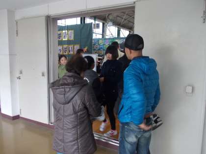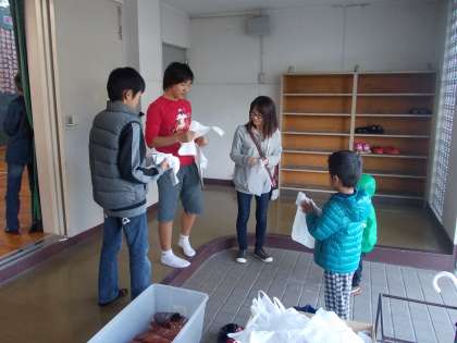 午後からボランティアの子が展覧会の受付のお手伝いをしてくれました。声をかけながら靴袋を渡したり、笑顔であいさつをしたりしました。学校の代表として、頼もしく思います。