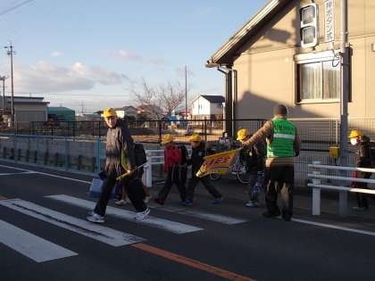 三学期スタート【1月7日(水)】 公開日 2015/01/07 更新日 2015/01/07 校長室より 大変冷え込んだ始業式の朝です。そんな寒さに負けることなく、見守り隊の皆さんに安全を確保していただきながら、元気よく登校する子どもたちです。