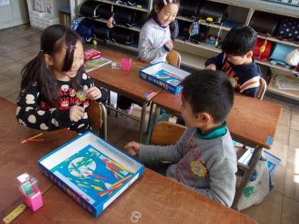 3学期の学習がスタートしました!!【1月8日(木) 1年生】 公開日 2015/01/08 更新日 2015/01/08 1年 3学期が始まり、各教科での学習が始まりました。どの子も一生懸命に話を聞き、楽しく取り組んでいます。 算数では、数え棒を使ってゲームをしながら、大きい数の数え方を学習しました。 国語では、冬に関する言葉を使ってかるたを作り、グループごとにかるた取りゲームをして楽しみました。