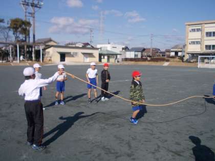 体育では、鬼ごっこをして広い運動場を思い切り走りました。