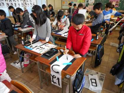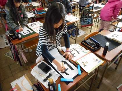 新年の決意を込めて! 【1月9日(金)の3年生】 公開日 2015/01/09 更新日 2015/01/09 3年 今日は「書き初め」を行いました。 いつもの半紙よりも長い紙に、立って書くことに挑戦しました。 新年の決意を込めて、どの子も真剣に書いていました。