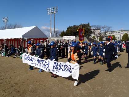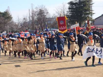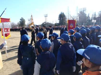 消防出初式に出席し、表彰を受けました 【1月10日(土)】 公開日 2015/01/10 更新日 2015/01/10 学校生活 九品寺公園にて、消防出初式がありました。 浅井中小からも4,5,6年生の代表30名が出席しました。 観閲、分列行進、消防訓練参観、記念撮影などがありました。 特に、分列行進は堂々とした姿でとても立派でした。