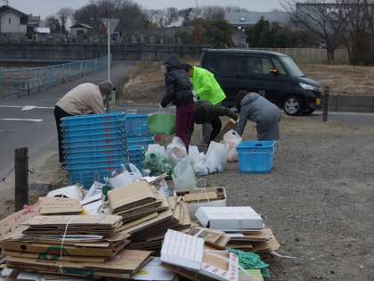 ビンのキャップ取りは大変ですが、一つ一つ丁寧に取っていただいていました。