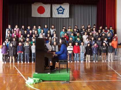 児童集会にむけて 1月23日(金)の5年生 公開日 2015/01/23 更新日 2015/01/23 5年 2学期に行った音楽交流会。たいへんすばらしかったので、全校のみんなにも聞いてもらうことになりました。今日は、月曜日の本番にむけて、みんなで心をひとつにがんばりました。月曜日、みんなの歌声が響きわたるのを楽しみにしています。