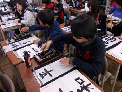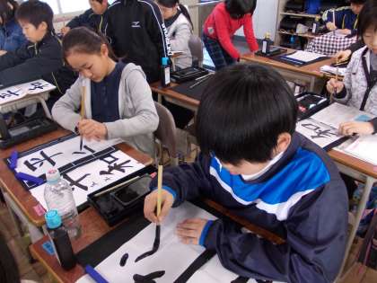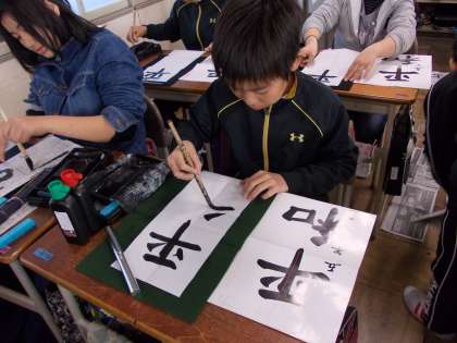 普段とは違う大きさの紙に緊張しながらも、清書に取り組むことができました。