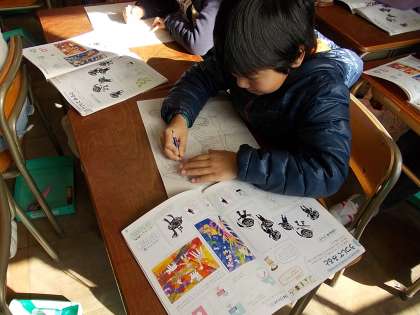 2年1組で、図工の研究授業が行われました。紙版画の作り方を丁寧に教えてもらい、自分の下絵から「もとになる形」を見つけ、「はる順序を考えて」画用紙に書き写していきました。はさみの使い方やのりの付け方などの基本的な技能を教えてもらい、きれいな作品になるよう一生懸命に制作することができました。どのように刷り上がるのか、出来上がりがとても楽しみです。