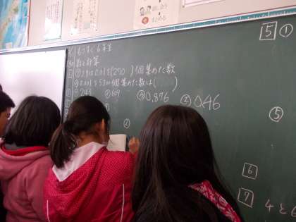 まとめの時期に入りました! 3月11日(水)の5年生 公開日 2015/03/11 更新日 2015/03/11 5年 3月も半ばになり、各教科まとめの時期となりました。 算数では、6年生になる準備として5年生で学習した内容の復習をがんばっています。