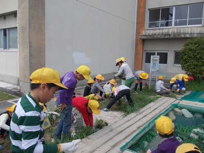 草との戦い【4月16日(木)の4年生】 公開日 2015/04/16 更新日 2015/04/16 4年 今日から全校草取りが始まりました。今回の4年生のミッションはひょうたん池の周りの草をなくすでした。みんな一生懸命生えている草を抜いていました。中には子どもたちの力では抜けず、「先生、抜けません。」という元気な草もありました。