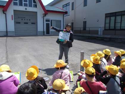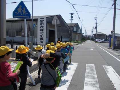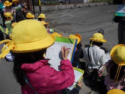 今日、3年生は学区探検に出かけました。地図を見ながら、学校の周りにはどんな施設があるかを確認しながら歩きました。施設では先生からの説明を聞き、どんな人が働いているかについても学びました。写真は3年1組の様子です。