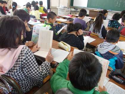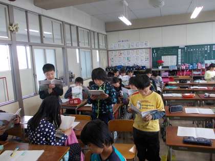 4年1組では、登場人物の気持ちを読み取るため、ナレーターや登場人物に分かれて音読練習をしていました。代表の班が発表をしましたが、登場人物の人柄が分かるようにしようと、抑揚をつけるなど工夫した音読をすることができていました。