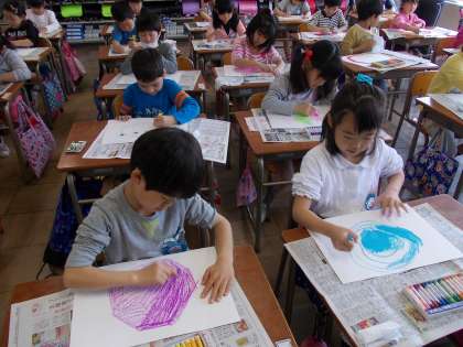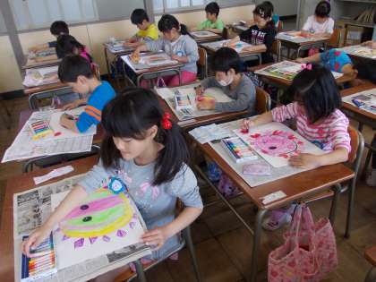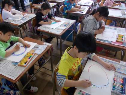 おひさま にこにこ 【4月23日(木)の1年生】 公開日 2015/04/23 更新日 2015/04/23 1年 図工の時間に、クレパスを使って、画用紙におひさまを描きました。色や形を工夫して、とてもすてきなおひさまを描き上げることができました。
