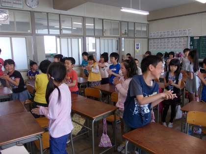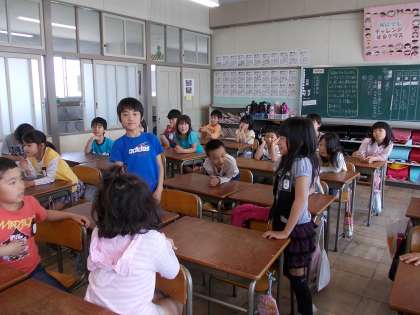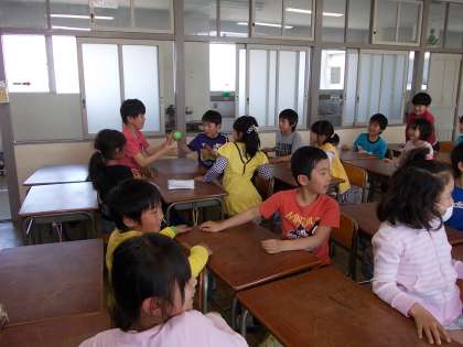 今日は自己紹介の学習とアルファベットの学習をしました。自分の名前を言ったり、あいさつをしたりすることができました。