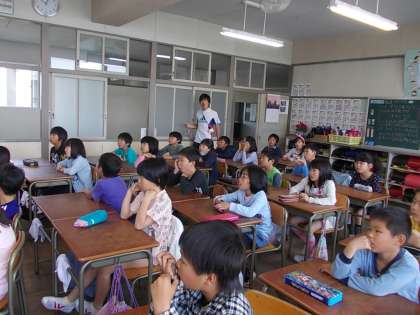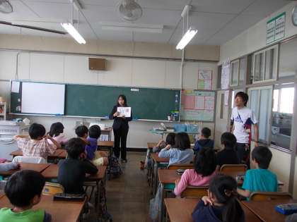 英語の授業 【4月27日(月)の3年生】 公開日 2015/04/27 更新日 2015/04/27 校長室より 3年2組では、ALTの先生と担任の先生による英語の授業が行われていました。A〜Zまでのアルファベットの発音やA〜Zで始まる単語の発音練習をしました。また、ゲームを行って、アルファベットの確認をしていきました。