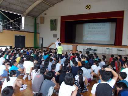(上)5・6年生は、服の力プロジェクトで衣類の大切さについて学びました。不要な服を回収して、難民をかかえる国々に送る活動を始めています。