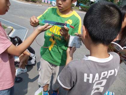 (中)4年生では、理科の授業で太陽電池を使った実験を行いました。