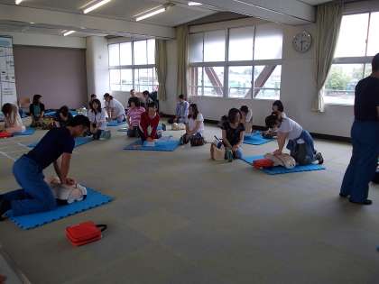 (下)学校保健委員会で、消防署の方から心肺蘇生法について講習を受けました。