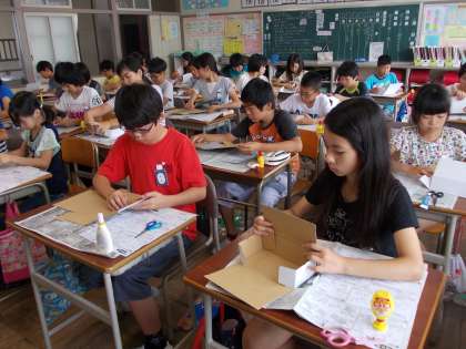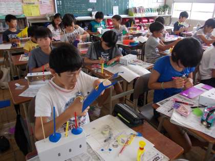 クランクやカムを使って 【6月22日(月)の6年生】 公開日 2015/06/22 更新日 2015/06/22 6年 図工では、クランクやカムを使って動くおもちゃ作りをしました。 どんな作品ができるかな。楽しみです。