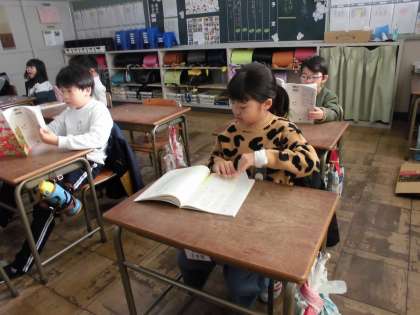 今日は音読から入ります。 「教科書の◯◯ページを開きましょう。」