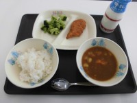 ごはん、牛乳、豚肉の生姜焼き、ブロッコリーのおかか和え、ちゃんこ汁です。