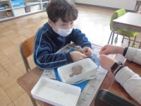 1年生は粘土で何かをつくっていましたね。3年生は算数です。分数についての学習です...