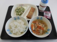 今日の献立は、ごはん、牛乳、ミンチカツ、塩だれサラダ、とり団子汁です。 とり団...