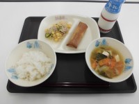 今日の献立は、中華めん、牛乳、とん骨ラーメン(汁)、揚げギョーザ、チンゲンサイの...