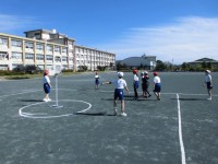 4年生の運動場での体育は、セストボールに取り組んでいます。みんなで協力してパスを...