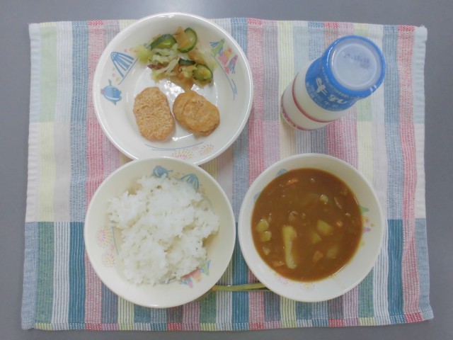 ご飯 牛乳 ポークカレー チキンナゲット 福神漬け和え