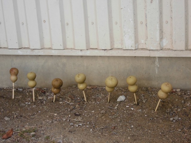 約2週間前に、穴をあけて水にひたしておいたひょうたんの、