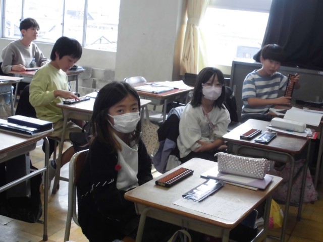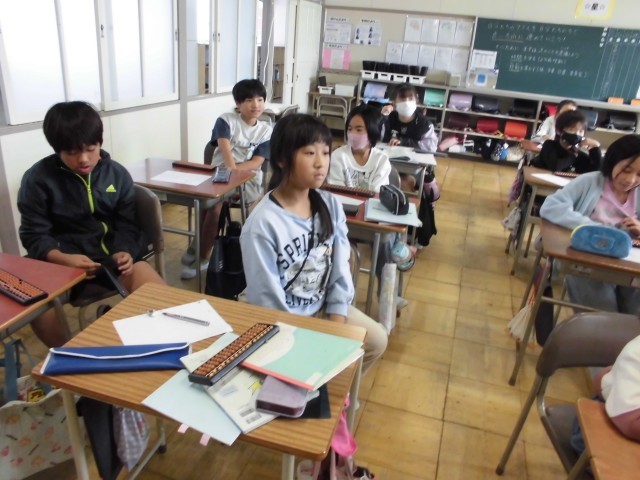 算数では、そろばんの学習をしていました。そろばんを使った数の表し方や計算の仕方を学んでいました。